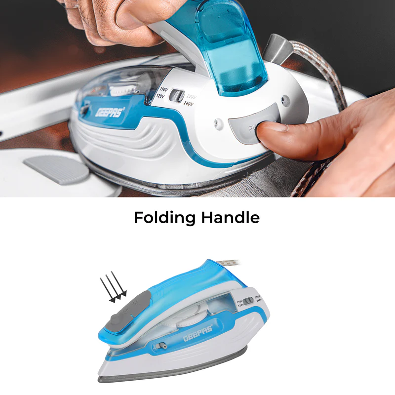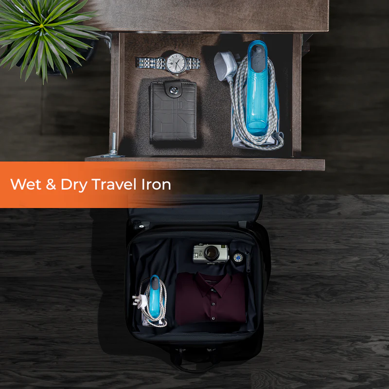 Tags: 2-in-1 iron, compact iron, dry iron, dual function iron, foldable handle, foldable iron, lightweight iron, mini iron, portable appliance, portable iron, steam iron, travel accessory, travel essentials, travel iron, wet and dry iron